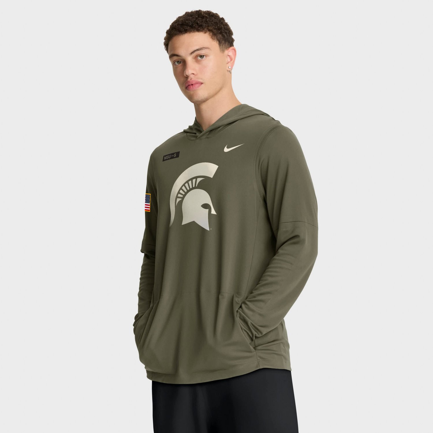 Nike Michigan State Spartans 2025 Military Appreciation Dri-FIT Long Sleeve Hoodie T-Shirt