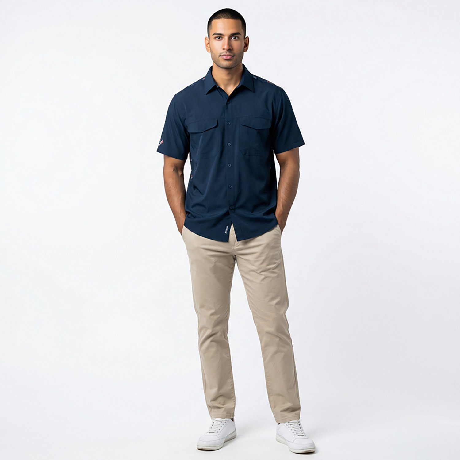 Antigua Houston Texans Men's Game Day Woven Short Sleeve Button Down Fishing Shirt