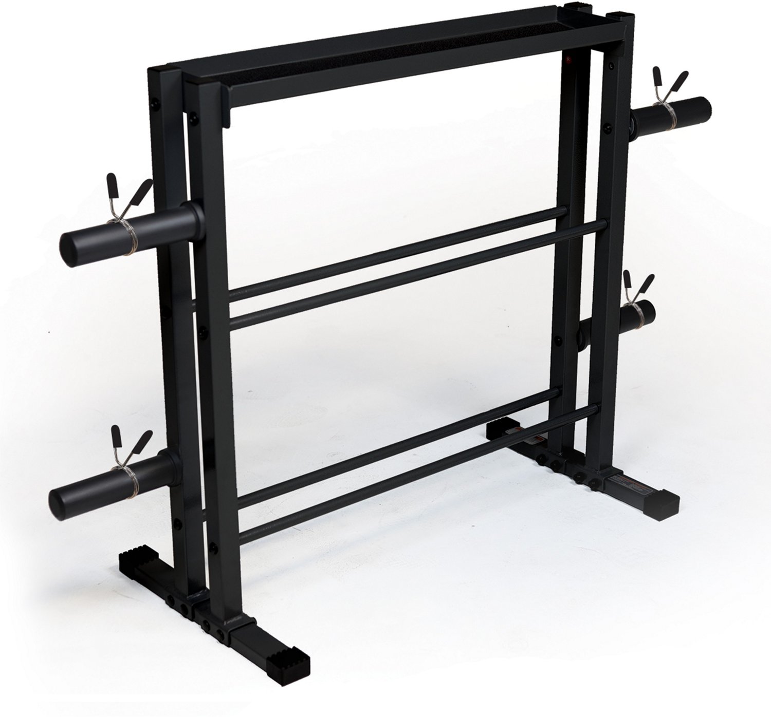 Now that you've stocked your workout room with the dumbbells, weight plates and kettlebells you need to tone and strengthen your body, keep them all organized with a specialized weight rack. Keeping your weights in one convenient location near your fitness mat puts them within easy reach while you're making gains at the bench, and helps make storage a little easier when it's time to hit the showers. Some weight racks are made just for smaller dumbbells, while others are built to hold large Olympic bars and weight plates. In selecting your dumbbell rack, keep an eye out for the weight capacity as well as the number of slots and compatibility to ensure it can handle your equipment.