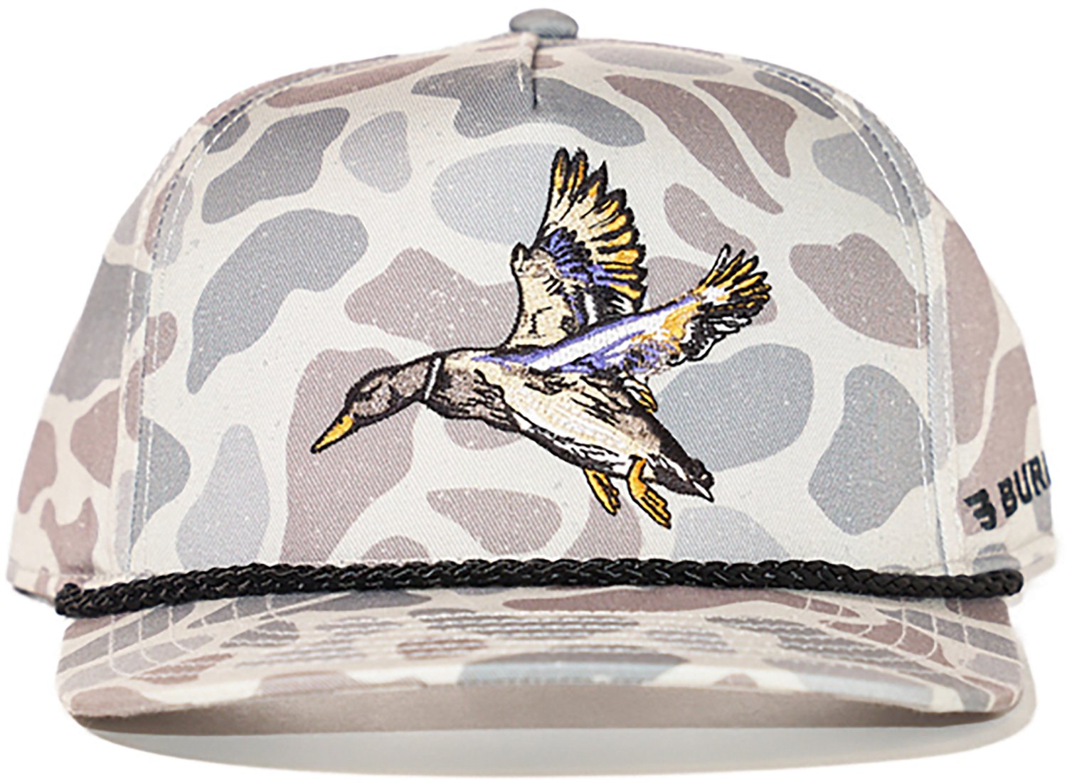 Showcase your love for the outdoors with the BURLEBO Men's Diving Mallard Hat. Its distinctive diving mallard graphic captures the spirit of hunting and puts your appreciation for wildlife on proud display. Crafted from 100% polyester and featuring a structured fit and rope detail, it provides comfort during everyday wear, at home and in the field.