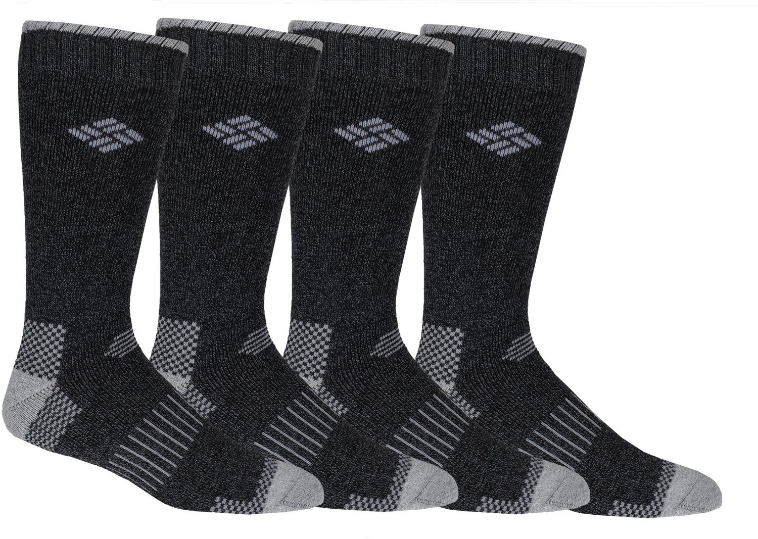 Step into comfort whenever you sport the Columbia Sportswear Moisture Control Check Crew Socks 4 Pack. The polyester, cotton, olefin, rayon, rubber and spandex fabric supplies an ultrasoft, cozy fit, while the moisture wicking fibers help your feet stay dry and the full cushioning delivers a plush, comfortable feel.