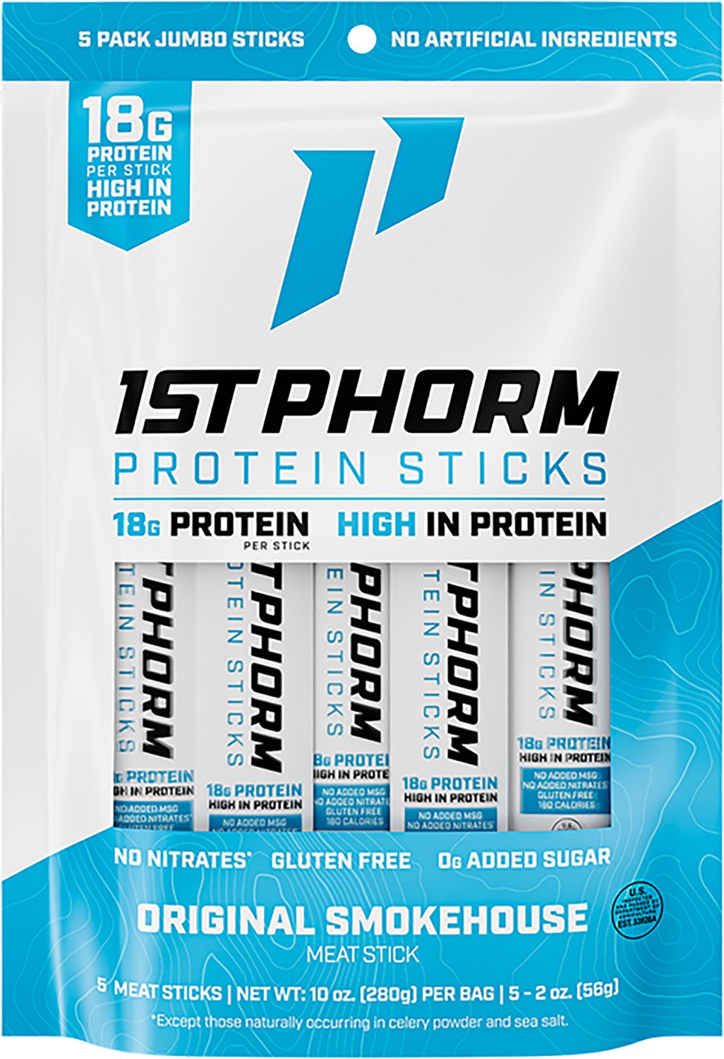 Enhance your fitness with the 1st Phorm Meat Stick 5-Pack. It contains 18g of protein per stick. With no MSG or nitrates, each stick is genuine beef, and its 150-200 calories help you meet your goals. 1st Phorm Protein Sticks are made from real cuts of lean beef and pork, sourced in the heart of America!