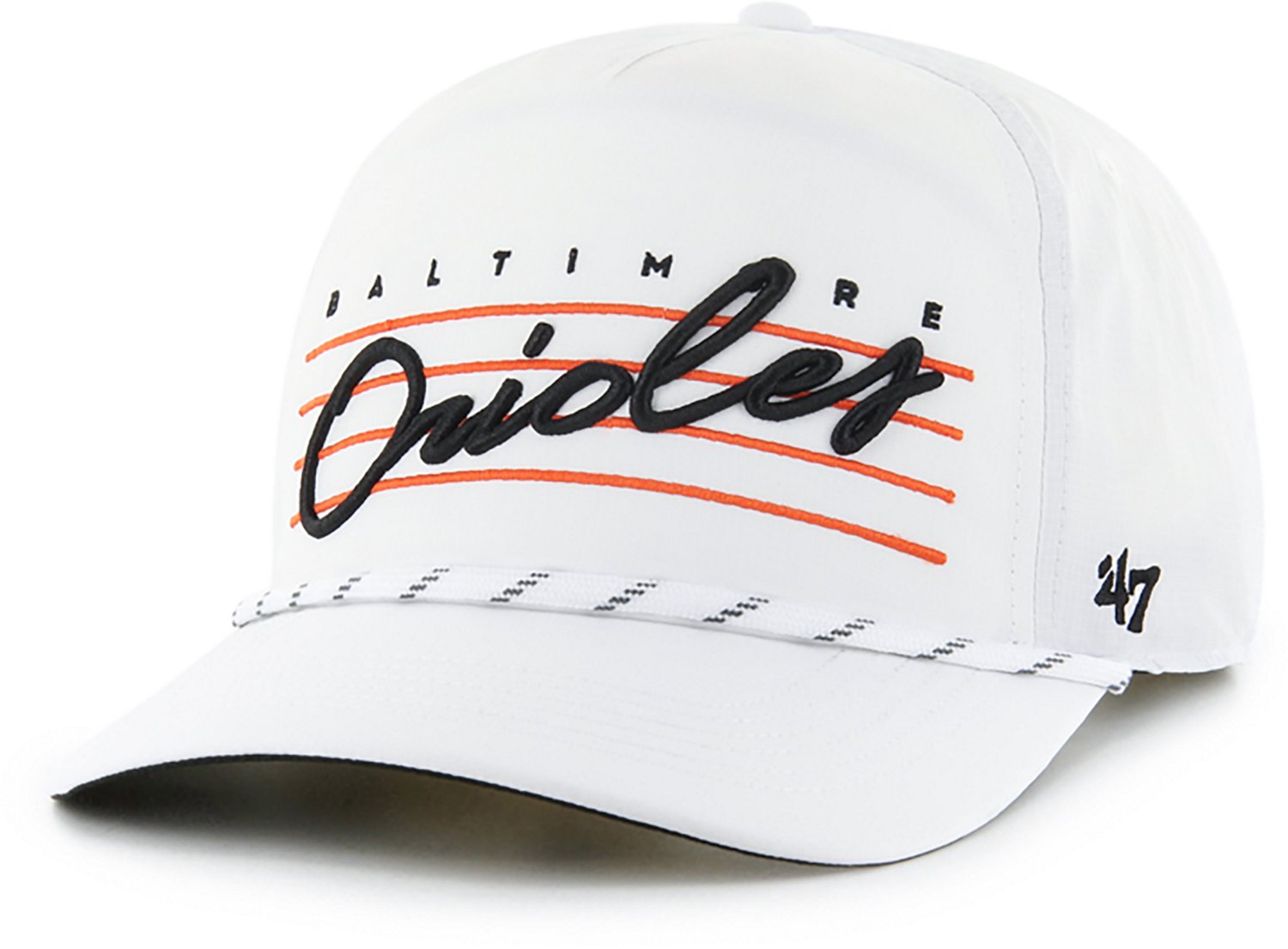 Flat embroidery of the Baltimore Orioles on the front