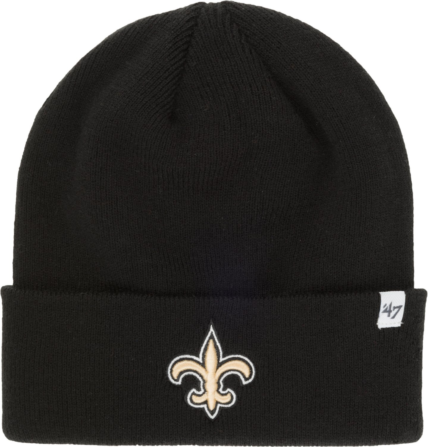 Keep warm as you root for your favorite pro football team in the '47 Adults' New Orleans Saints Raised Cuff Knit Cap. Made of 100% acrylic yarn for stretchy comfort, the cap features a raised-embroidery team logo on the cuff to showcase your fan pride.