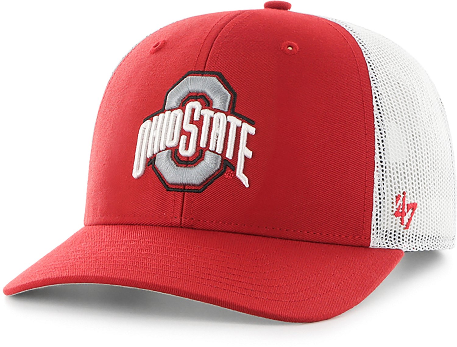 Cheer alongside other fans when you sport the 47 Adults' Ohio State Primary Logo Trucker Cap. This cap offers a strap at the back for easy size adjustments and offers a bold team-theme embroidery on the front.