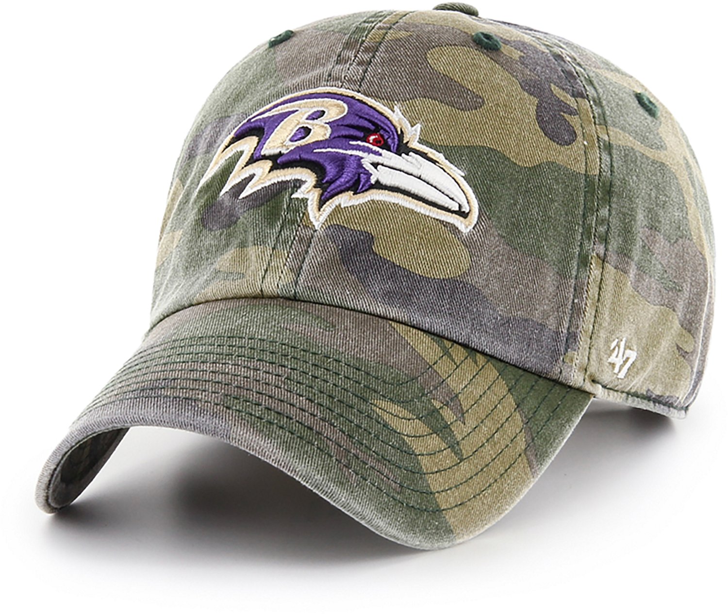 Top off your game day look with the 47 Adults' Ravens Camo Clean Up Cap. The cotton twill construction provides a comfortable feel, while the raised team embroidery makes it clear you're a dedicated fan.