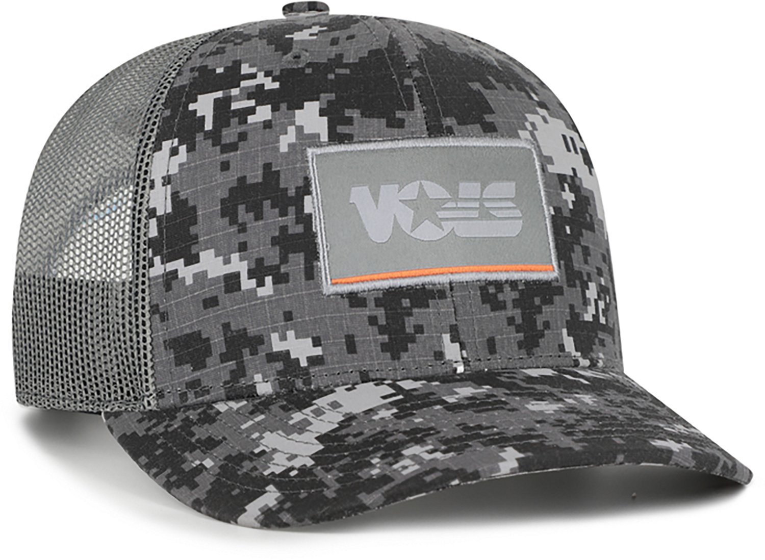 Root for your favorite team when you wear the '47 Adults' Tennessee Volunteers Smokey Grey Camo Square Trucker Cap. It is made of 100% cotton. The relaxed fit works with any outfit, and its adjustable curve helps block the sun from your eyes. The raised embroidery of the Tennessee Volunteers on the front shows off your team spirit.