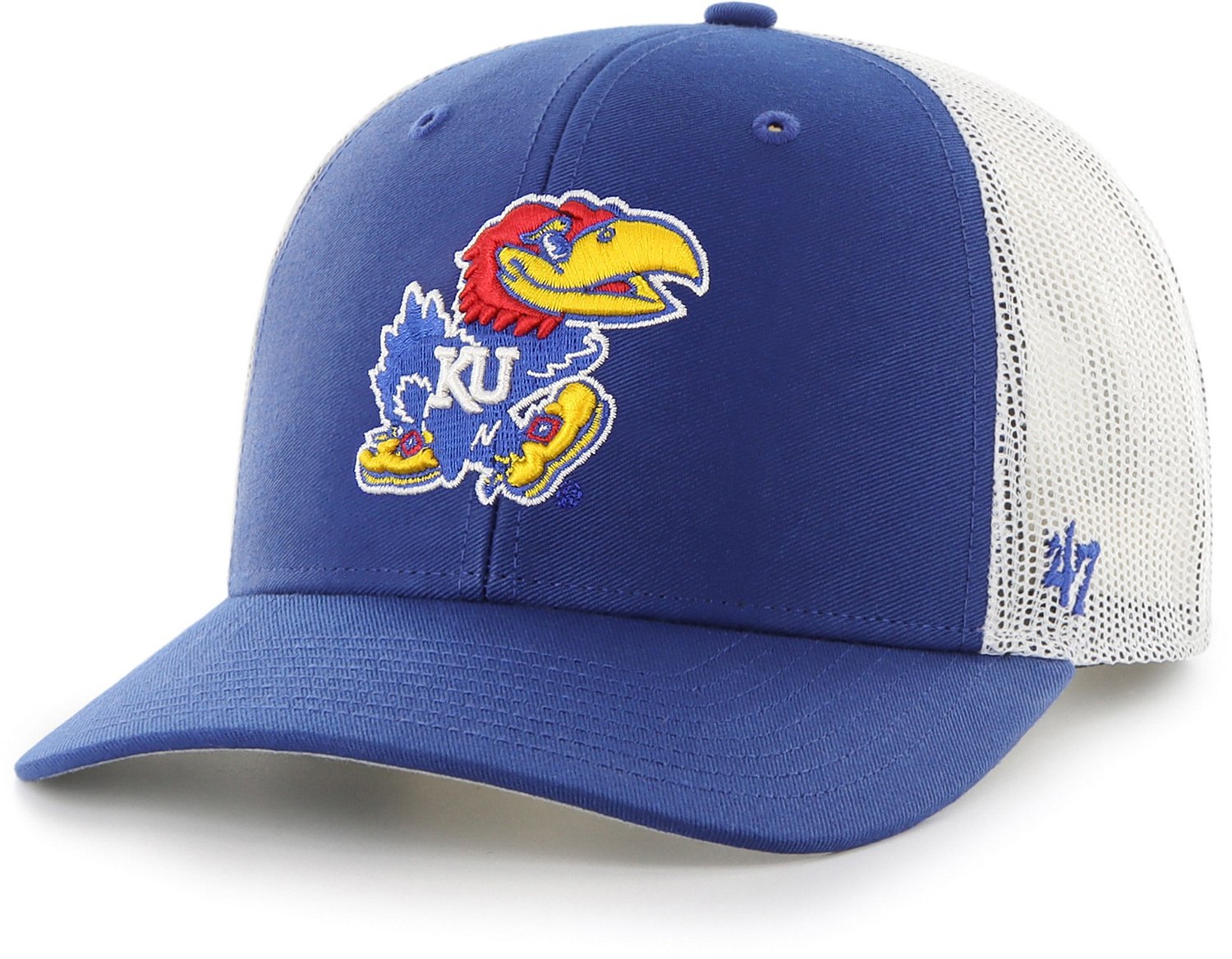 Show off your fan pride in style and comfort whenever you sport the '47 Adults' University of Kansas Trucker Cap. The raised embroidered Jayhawks logo detail proudly puts your fandom on display. The hard mesh back panel delivers cooling airflow. The garment washed cotton twill front panels supply a soft, comfortable feel, while the adjustable plastic snapback closure helps ensure a secure, custom fit.