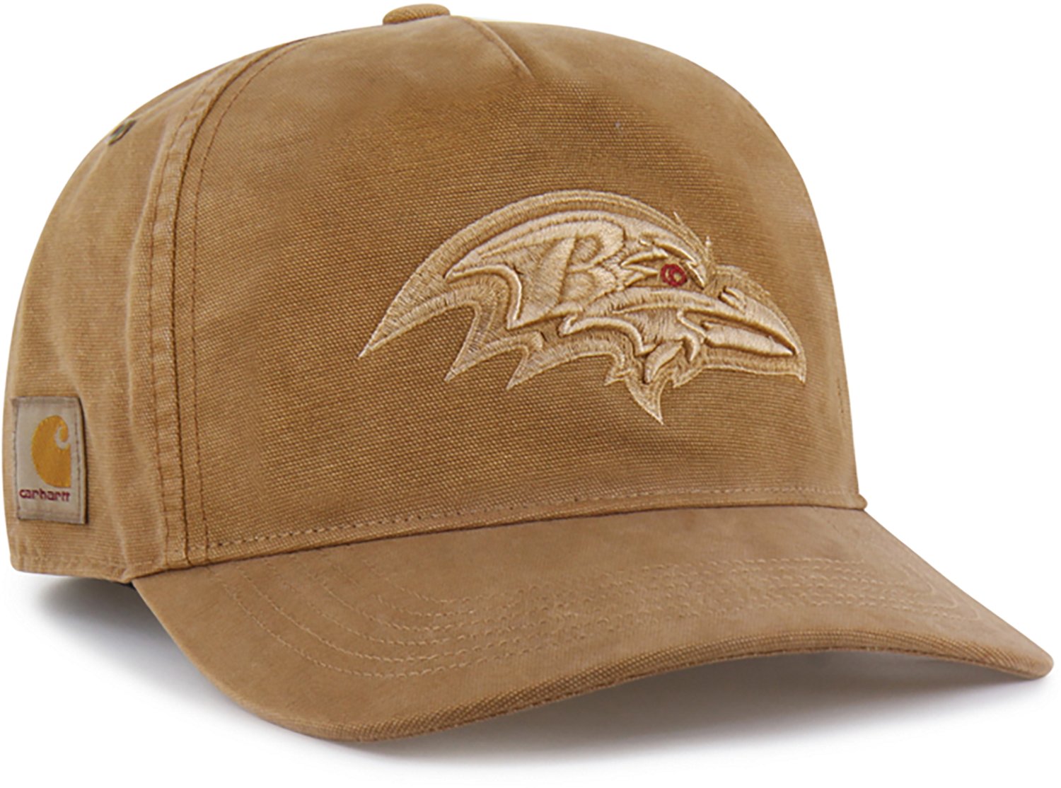 Gear up for game day with the '47 Baltimore Ravens Carhartt Garment Dyed Hitch Cap. The Carhartt garment-dyed canvas fabric provides comfort and breathability, while the adjustable plastic snapback closure offers a custom fit. The raised embroidered logo shows off your Ravens pride.