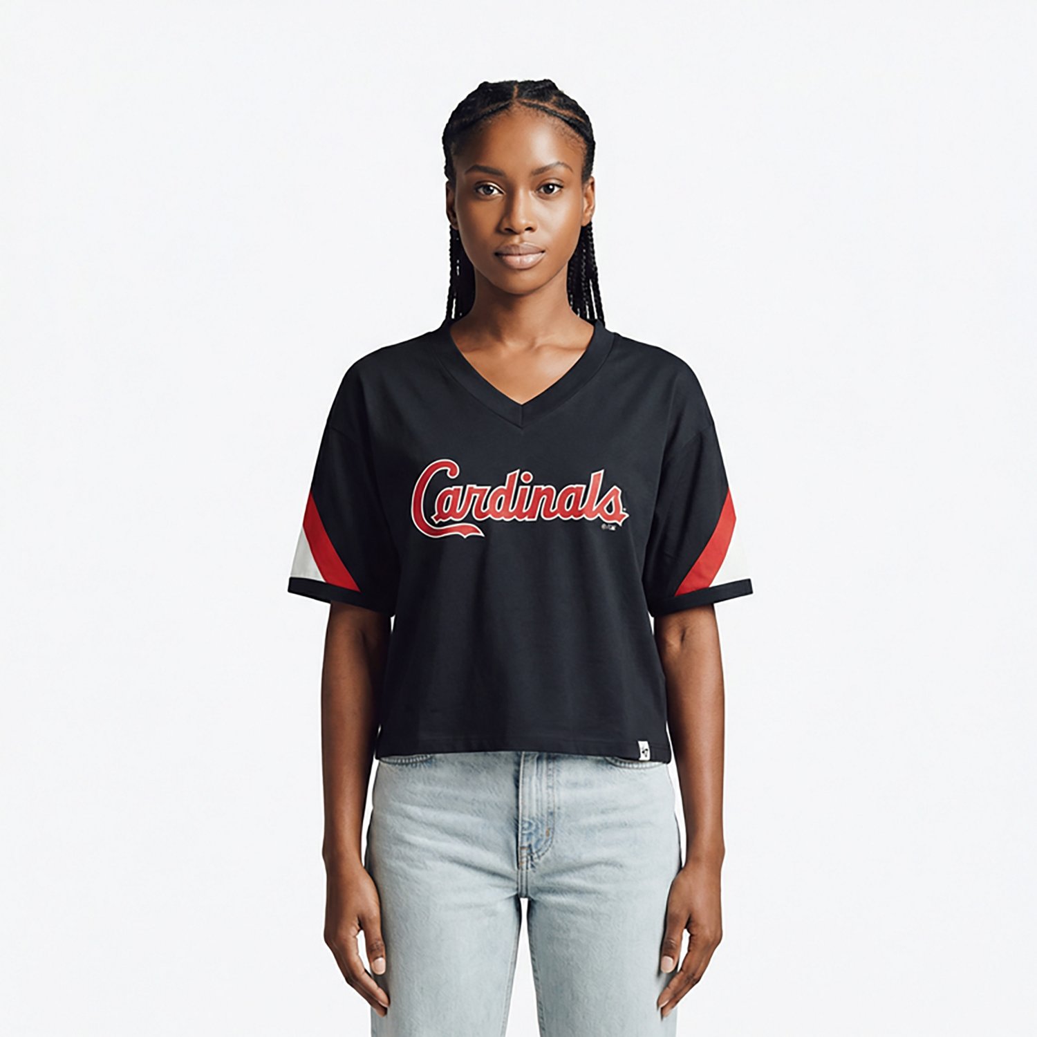 '47 Women's St. Louis Cardinals Geo Cropped Short Sleeve V-Neck T-shirt