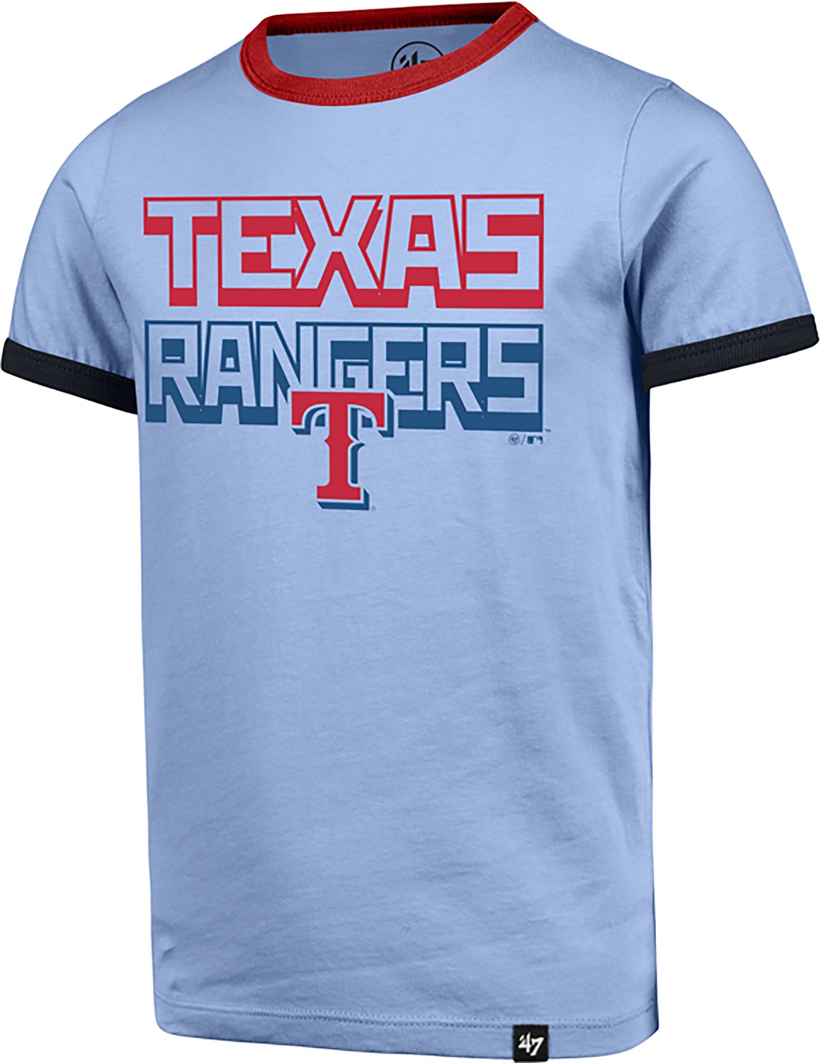 Stay comfortable through the wildest of games in the 47 Brand Youth Rangers Jump Up Changeup Short Sleeve T-shirt. The T-shirt features your team's logo graphic, along with a comfortable cut and material that deliver a classic look and feel that you'll love for game day.