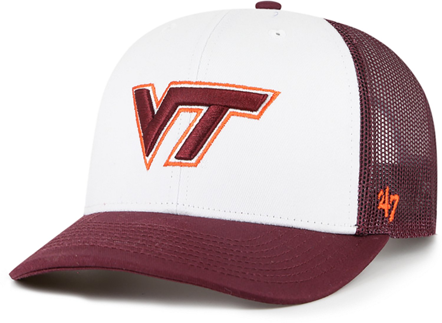 Show your support with the 47 Brands Adults' Virginia Tech Hokies Freshman Trucker Cap. The cotton material is soft and comfortable, and the team embroidery shows your fandom with pride.
