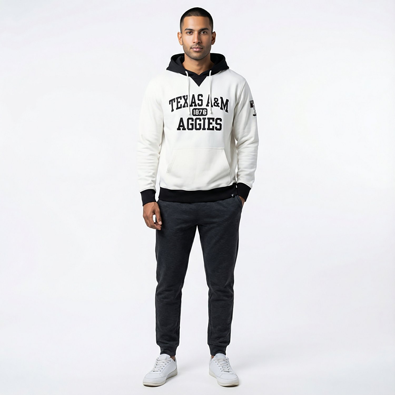 Texas A&M Aggies twill logo applique placed on chest and left sleeve
