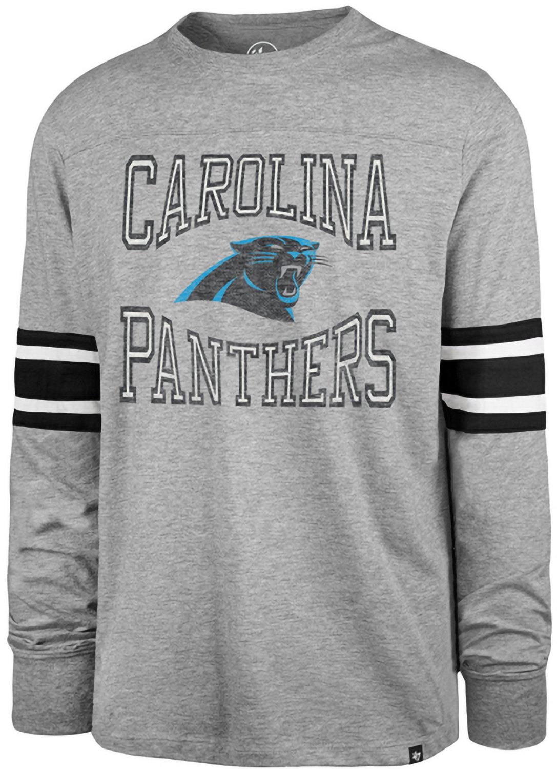 The '47 Carolina Panthers Men's Cover Two Brex Long Sleeve T-shirt is a must-have for Carolina fans. Made from 100% cotton, the tee is durable and comfortable for everyday wear. Between the stripes on the sleeves and the vintage team graphic on the chest, this shirt represents the Panthers well.