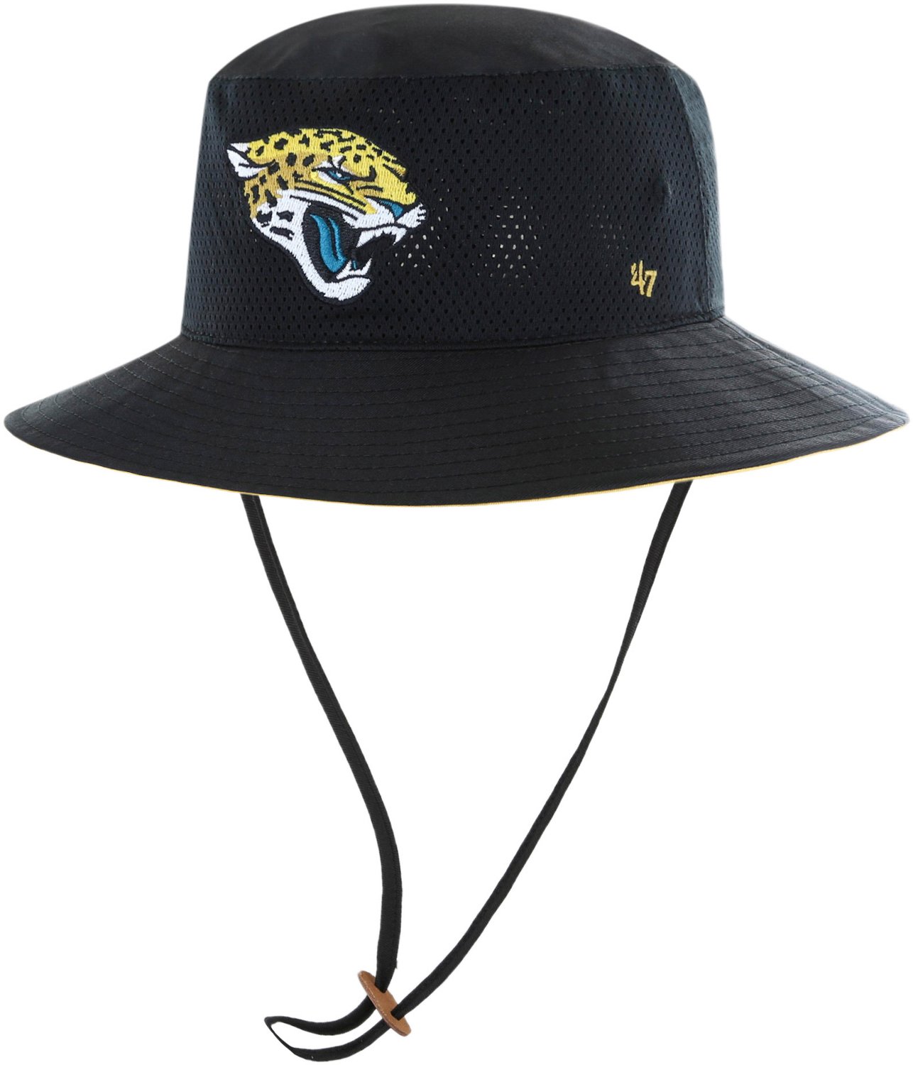 Kick back and relax with the '47 Jacksonville Jaguars Panama Pail Bucket Hat. The polyester material provides a comfortable feel, while the adjustable chin strap offers a custom fit. The mesh panels promote breathability, and the team logo shows off your Jags pride.