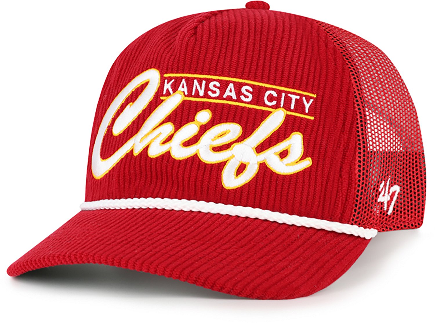 Get ready for game day with the '47 Kansas City Chiefs Double Header Mesh Cap. The corduroy and mesh fabric provides comfort and breathability, while the snapback closure offers a custom fit. The flat embroidery shows off your Chiefs pride.