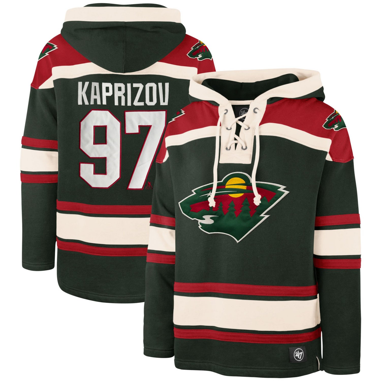 Throughout his career Kirill Kaprizov has inspired you to be a better fan Now you can support his commitment to the game by picking up this Player Lacer hoodie from '47 It's decked out in sweet Minnesota Wild graphics and colors and it features his name and number displayed on the back