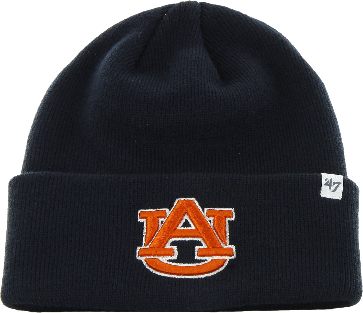 Keep warm as you cheer on the Tigers in the '47 Men's Auburn University Raised Cuff Knit Cap, which is made of 100% acrylic yarn for comfortable wear. This cap features a raised-embroidery team logo on the cuff to showcase your fan pride. '47 logo. One size fits most.