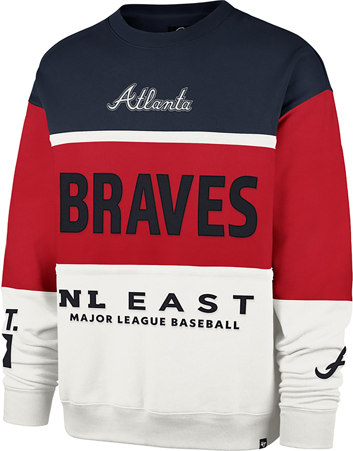 Make your outfit pop by wearing the 47 Men's Braves On Five Maximalist Long Sleeve Crew. This pullover features sports fleece and long sleeves to help keep your comfortable in cool temperatures, and its team details bring a bold look.