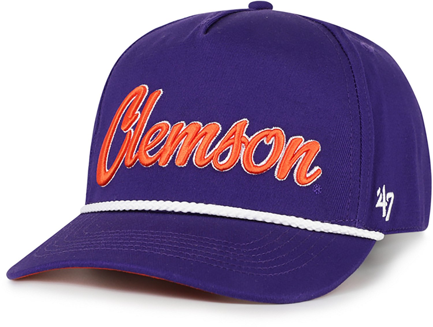 Show off your team pride in style in the '47 Men's Clemson Overhand Hitch cap. This cap sports a structured silhouette, curved visor and adjustable plastic snapback closure. A raised embroidery logo on the front adds classic detail. Garment-washed cotton twill allows for comfort as well as style.