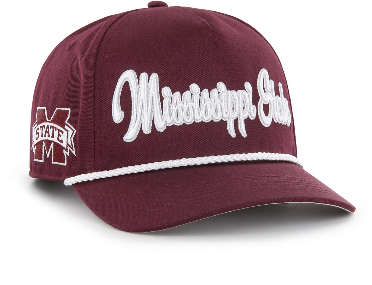 Show off your team pride in style in the '47 Men's Mississippi State Overhand Hitch cap. This cap sports a structured silhouette, curved visor and adjustable plastic snapback closure. A raised embroidery logo on the front adds classic detail. Garment-washed cotton twill allows for comfort as well as style.