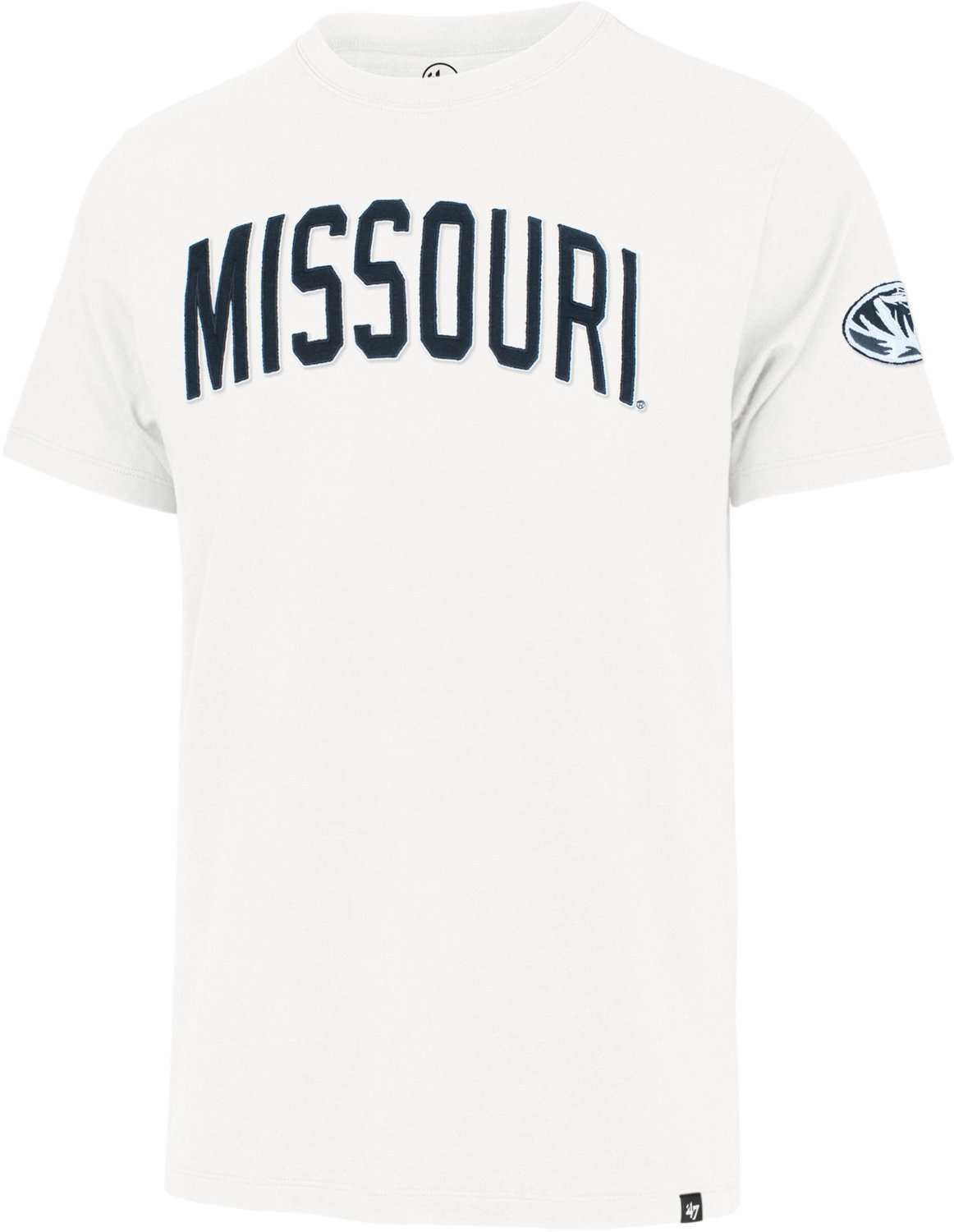 The 47 Men's Missouri Namesake Franklin Fieldhouse Short Sleeve T-shirt IS made from lightweight 100% cotton with a special garment wash process for a lived-in look and feel. This style features hand-cut, double-layered self-fabric appliqués inspired by sports jerseys on the front and sleeve.