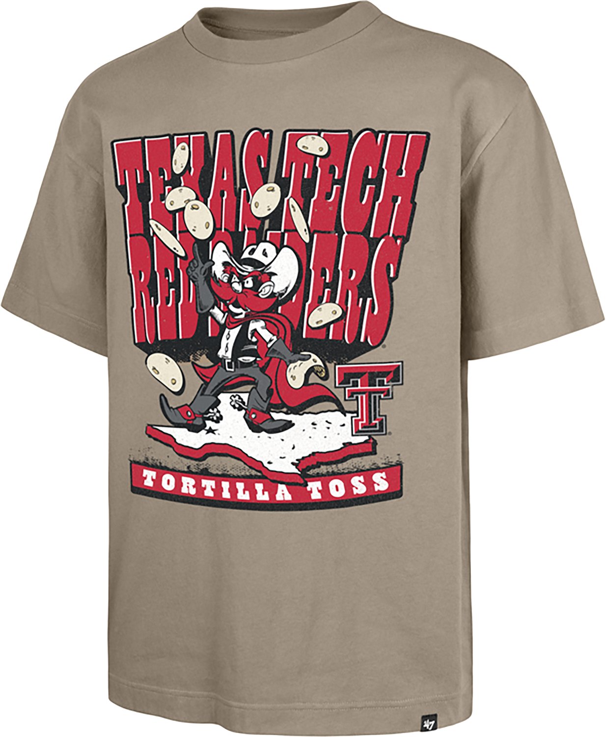 Root for your favorite team when you wear the '47 Men's Texas Tech Red Raiders Tortilla Foundation Short Sleeve T-shirt. It is made of 100% cotton. The short sleeves keep you cool, and its drop shoulders create a roomy wear. The screen printed Texas Tech Red Raiders graphics on the front and back show off your team spirit.