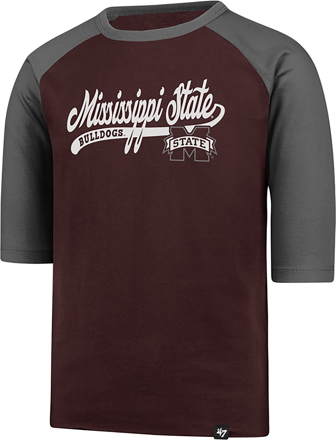 Gear up for game day with the '47 Mississippi State University Boys' Super Script Line Drive Raglan Graphic T-shirt. The cotton material provides a comfortable feel, while the screen-printed design shows off your Bulldogs pride.