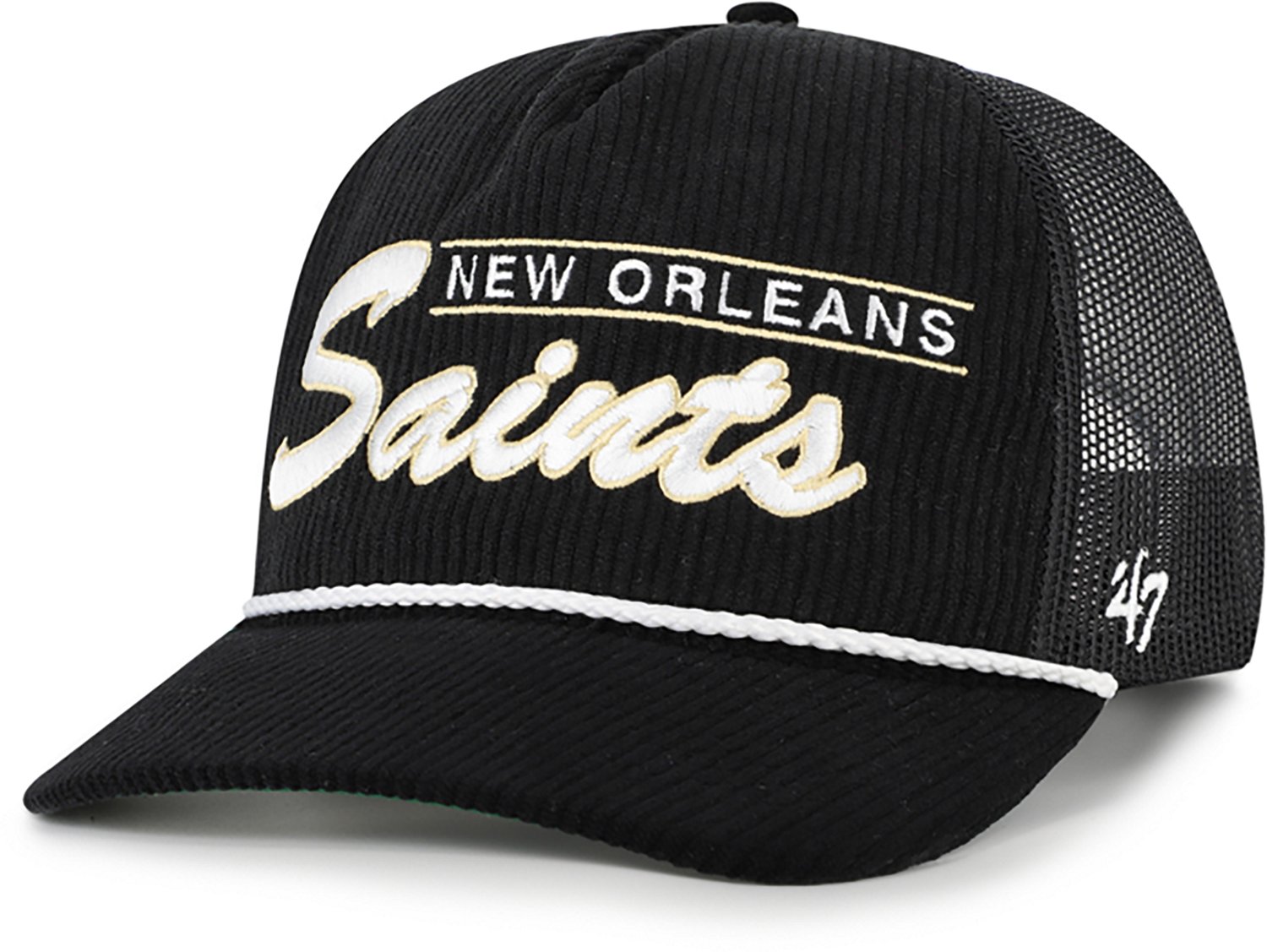 Get ready for game day with the '47 New Orleans Saints Double Header Mesh Cap. The corduroy and mesh fabric provides comfort and breathability, while the snapback closure offers a custom fit. The flat embroidery shows off your Saints pride.