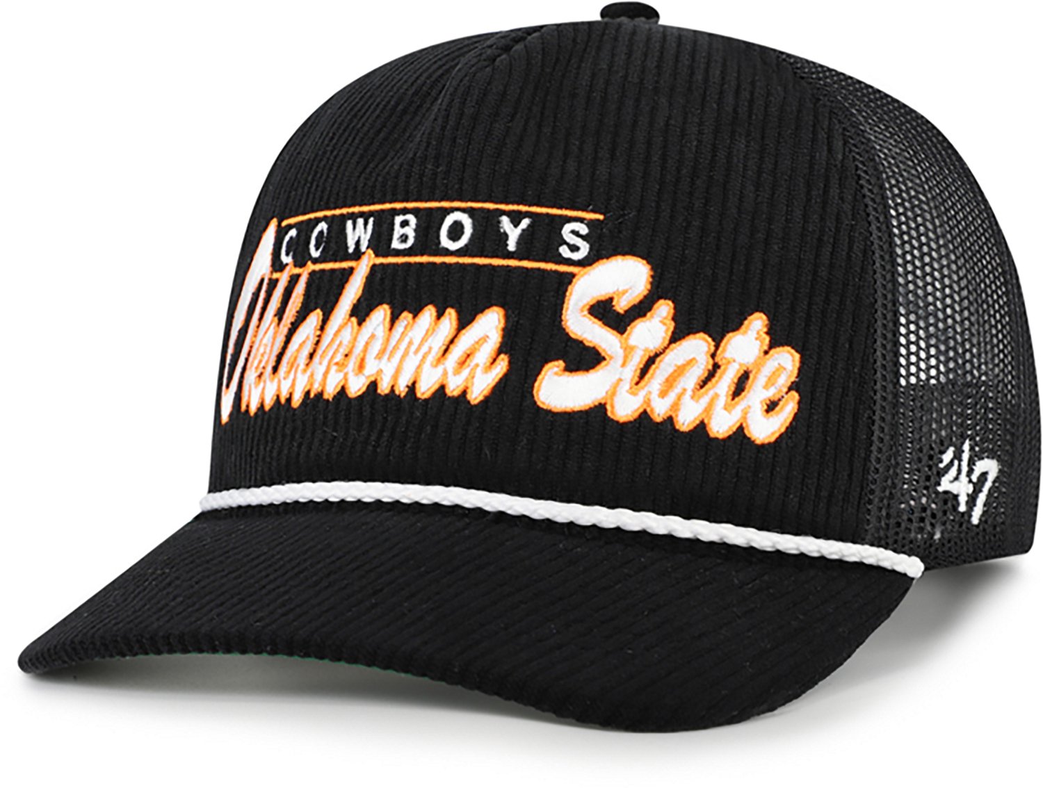 Top off your game day look when you wear the 47 Oklahoma State Double Header Mesh Hitch Cap. This cap is decorated with a team design to make it clear you're a dedicated fan.