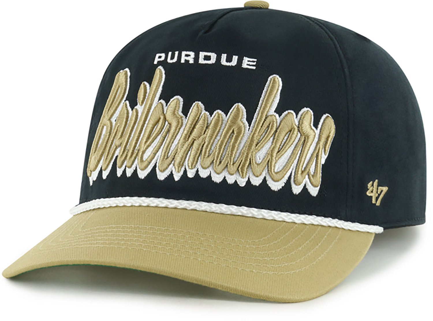 Show off your love for the Boilermakers when you wear the '47 Purdue University Drop Shadow Rope Hitch Cap. The 100% cotton construction provides a soft, comfortable feel, while the flat team embroidery makes it clear you're a dedicated fan.