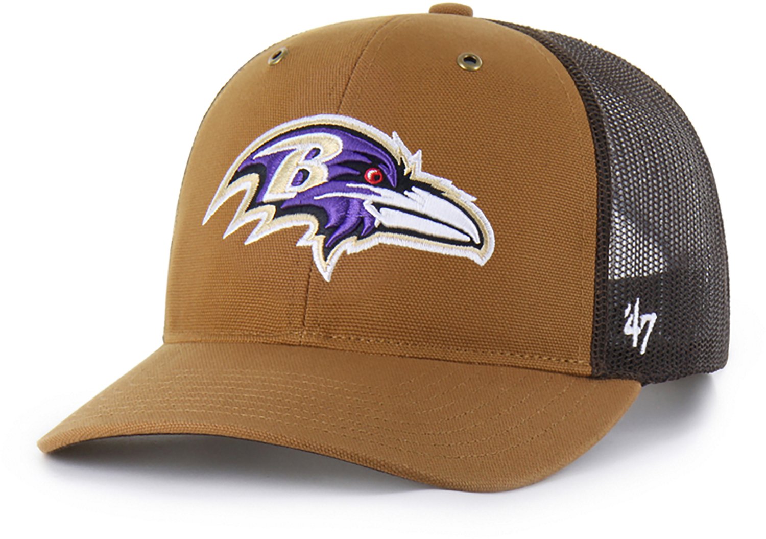 Head to the next game while wearing the Carhartt x '47 Ravens Trucker Cap. The duck cloth construction offers comfort and durability, while the embroidered team logo puts your fandom on display.