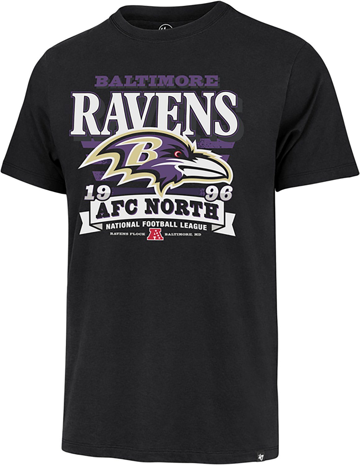 Make sure everyone knows you're a true fan when you wear the 47 Ravens Stripe Splash T-shirt. The 100% cotton jersey construction helps keep you comfortable throughout the day, while the screen-printed team graphic puts your fan pride on display.