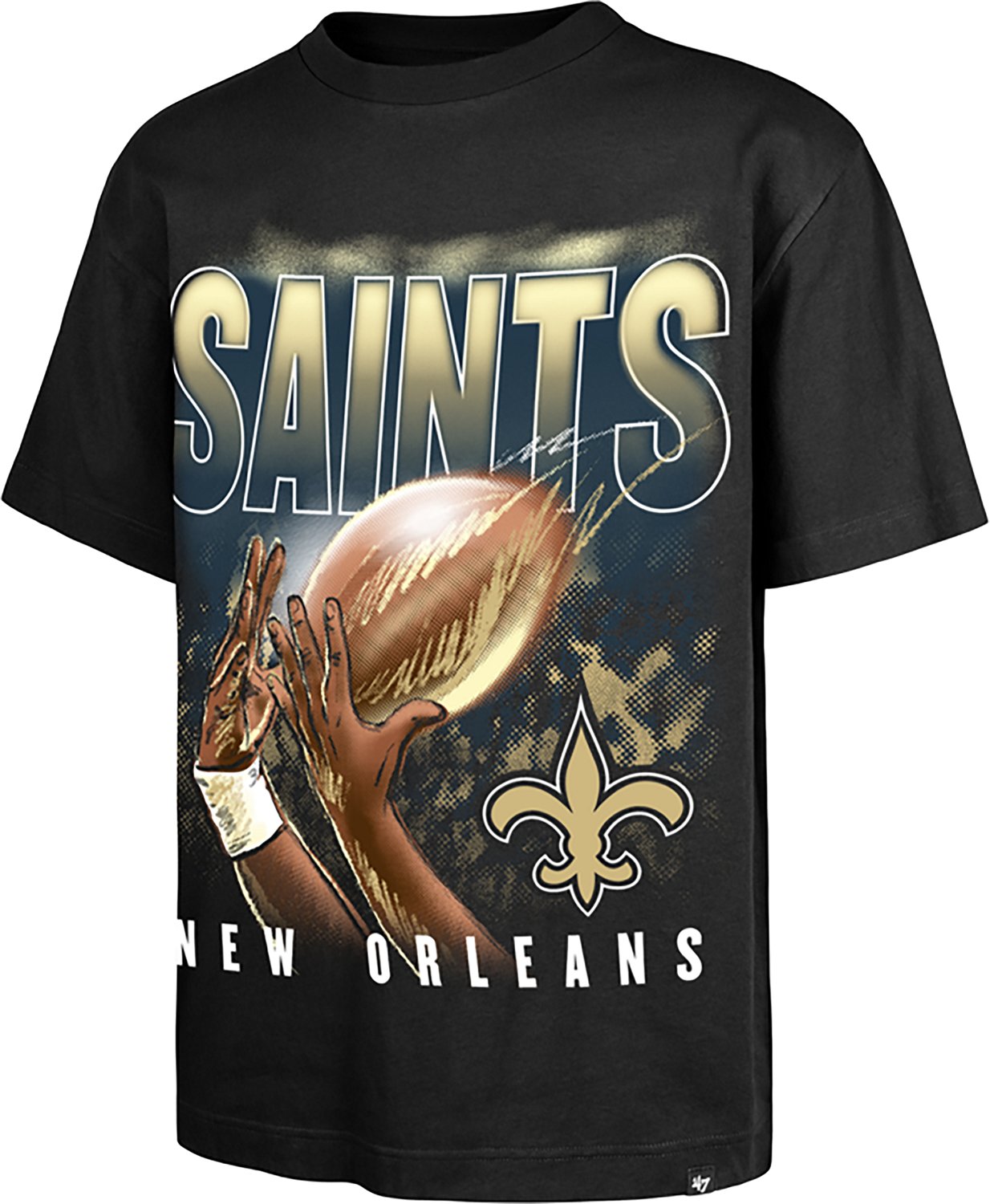 Make sure everyone knows you're a true fan when you wear the 47 Saints Fingertip Catch Foundation T-shirt. The 100% cotton jersey construction helps keep you comfortable throughout the day, while the screen-printed team graphic puts your fan pride on display.