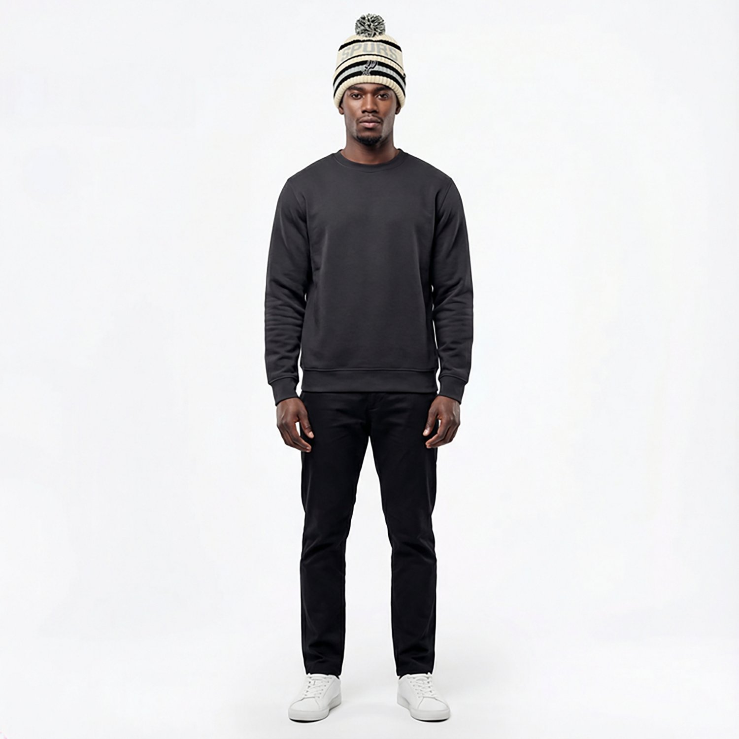 Text jacquard and a pom on top