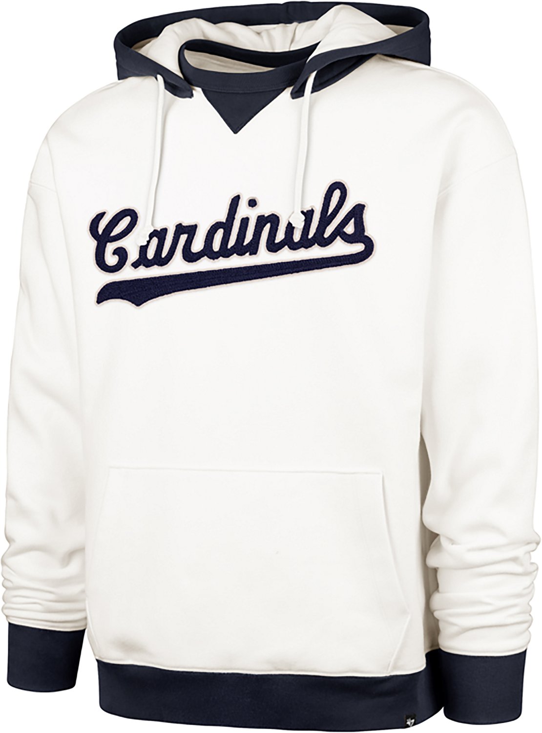 Show your team spirit wearing this '47 St. Louis Cardinals Men's Grandstand Collection Wordmark Original Fleece Hoodie, featuring chenille chainstitched vintage wordmark embroidery on the front. Crafted from heavyweight tanker fleece in an 80% cotton, 20% polyester blend, it wears comfortably and keeps you warm and cozy all gameday long.