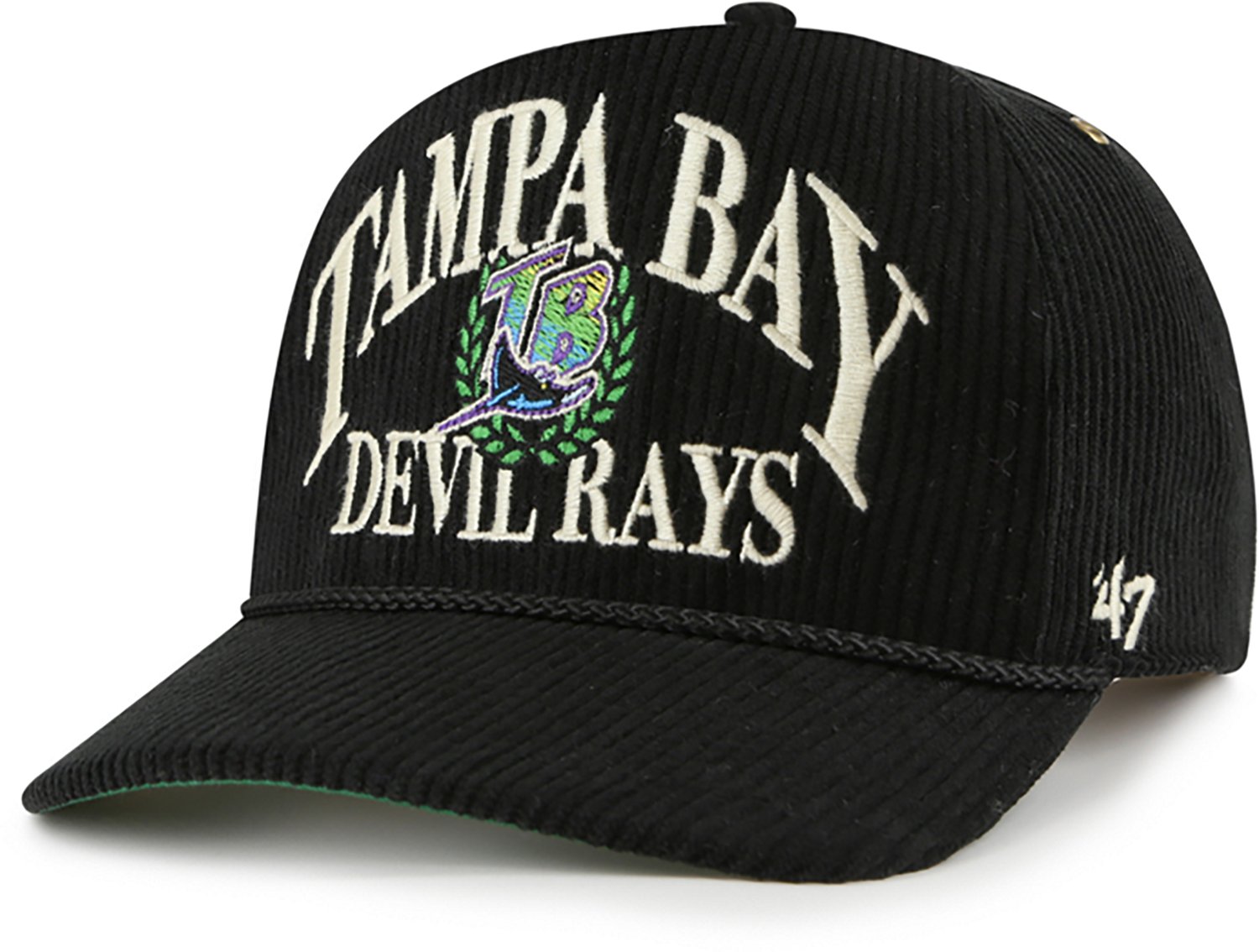 Get ready for game day with the '47 Tampa Bay Rays Cooperstown Pitchout Rope Hitch Cap. The corduroy fabric provides a comfortable feel, while the plastic snapback closure offers a custom fit. The front flat embroidery shows off your Rays pride.