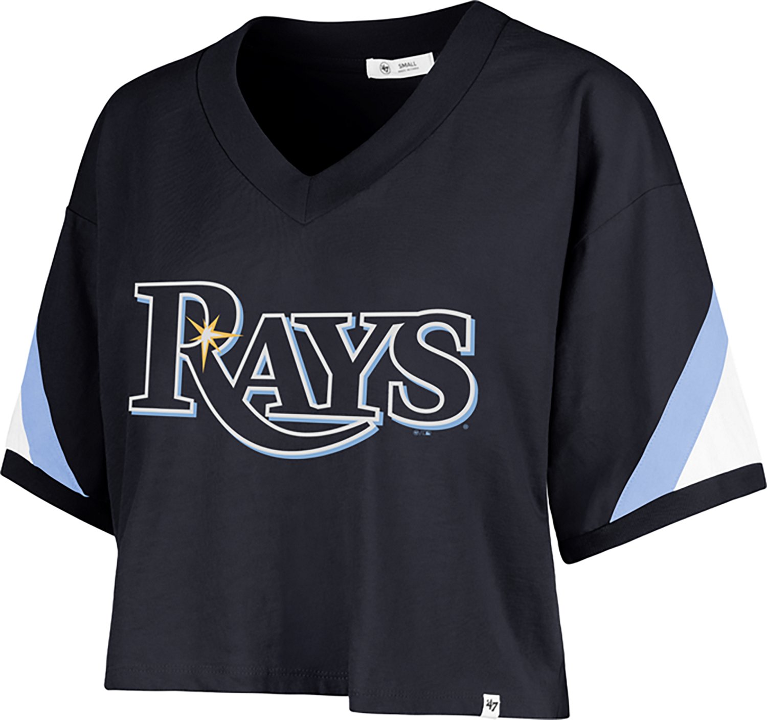 Support your favorite team with the '47 Tampa Bay Rays Women's Wordmark Geo Graphic T-shirt. The cotton material provides a comfortable feel, while the screen-printed graphic shows off your Rays pride.