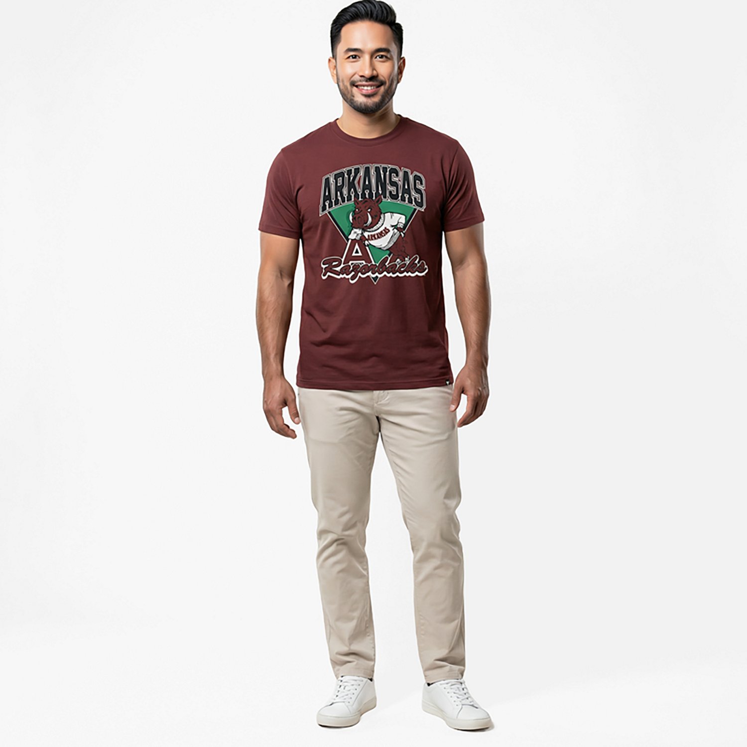 Root for the home team with the '47 University of Arkansas Barrel Franklin Graphic T-shirt. The cotton material provides a comfortable feel, while the graphic design shows off your Razorbacks pride.