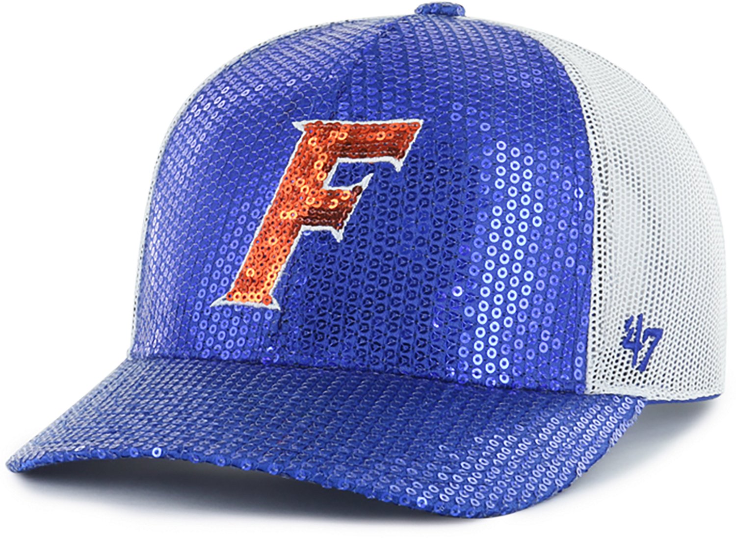 Represent the Gators when you put on the '47 University of Florida Women's Dazzle Trucker Cap. The sequin material and hard mesh construction offers comfort and durability, while the embroidered logo puts your team pride on display.