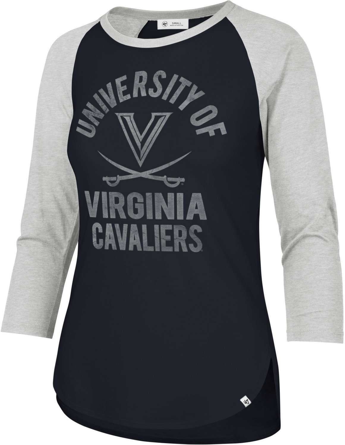 Show your love of the Cavaliers by wearing the '47 University of Virginia Women's Fade Raglan Graphic 3/4 Length Sleeve T-shirt. The cotton construction provides comfort that lasts the entire day, while the distressed Virginia design highlights your team spirit with a vintage look.