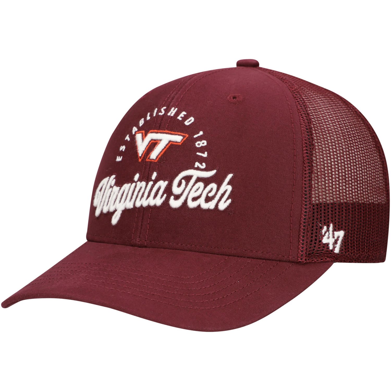 Show off your Virginia Tech Hokies pride with this '47 Pitstop Trucker Adjustable Hat The '47 Trucker features a structured silhouette with a cotton twill front and a semi-curved brim offering a classic and comfortable fit Its breathable mesh back and embroidered team logo and script on the crown make it a perfect choice for any Hokies fan