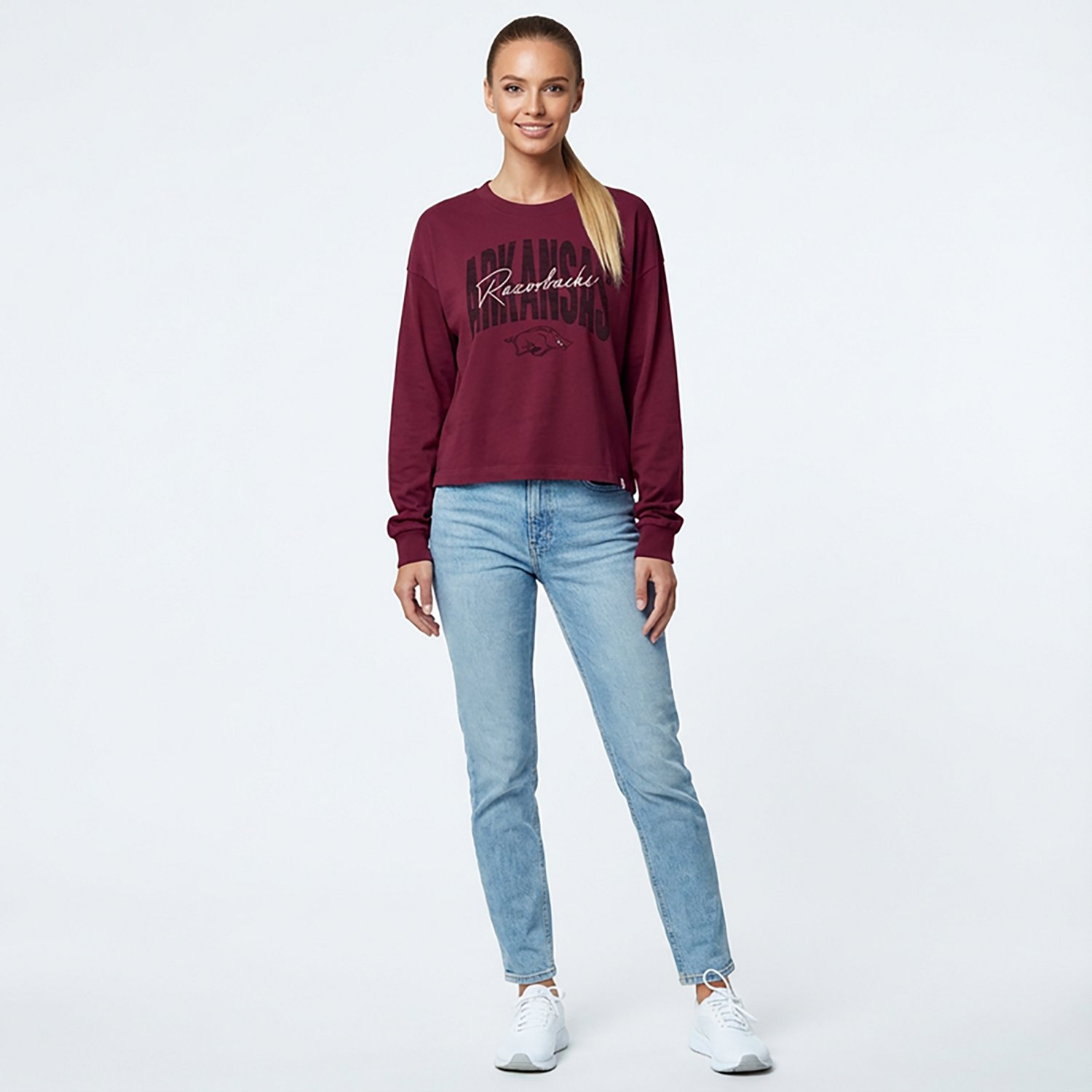If you're looking to ensure everyone knows what school you cheer for, throw on the 47 Women's Arkansas Muse Sydney Long Sleeve Crew. This crew is made of 100% cotton with a slightly cropped silhouette to provide a cool, comfortable style, and the team name script brings your fandom to the forefront.