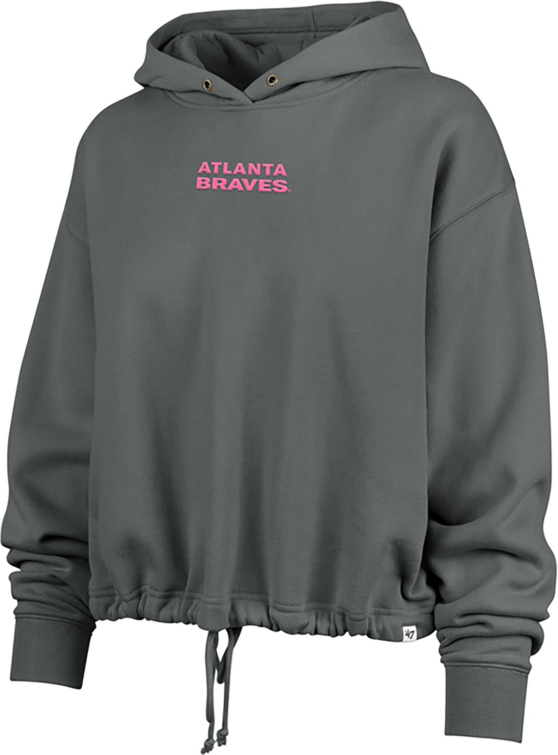 Root for your favorite team when you wear the '47 Women's Atlanta Braves Bright Side Venice Long Sleeve Hoodie. It is made of 60% cotton and 40% polyester. The Emerson fleece creates a soft, warm feel, and its drawstring waist creates an adjustable fit. The screen printed Atlanta Braves graphics on the front center, back center, and sleeves show off your team spirit.