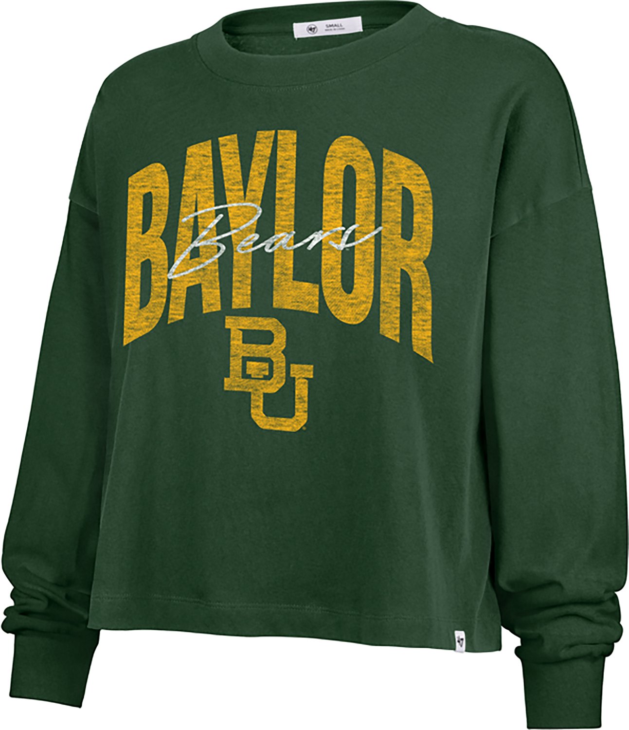 If you're looking to ensure everyone knows what school you cheer for, throw on the 47 Women's Baylor Muse Sydney Long Sleeve Crew Sweatshirt. This crew is made of 100% cotton with a slightly cropped silhouette to provide a cool, comfortable style, and the team name script brings your fandom to the forefront.