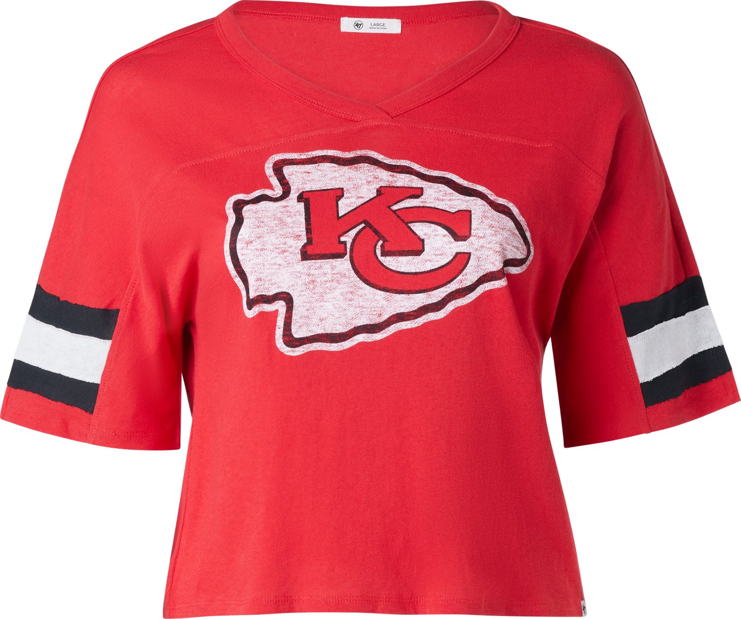 Let everyone know who you're cheering for on game day when you wear the 47 Women's Chiefs Double Header Premium Scout Crop T-shirt. The 100% cotton construction helps keep you comfortable throughout the day, while the distressed, screen-printed team graphic on the chest flaunts your fandom.