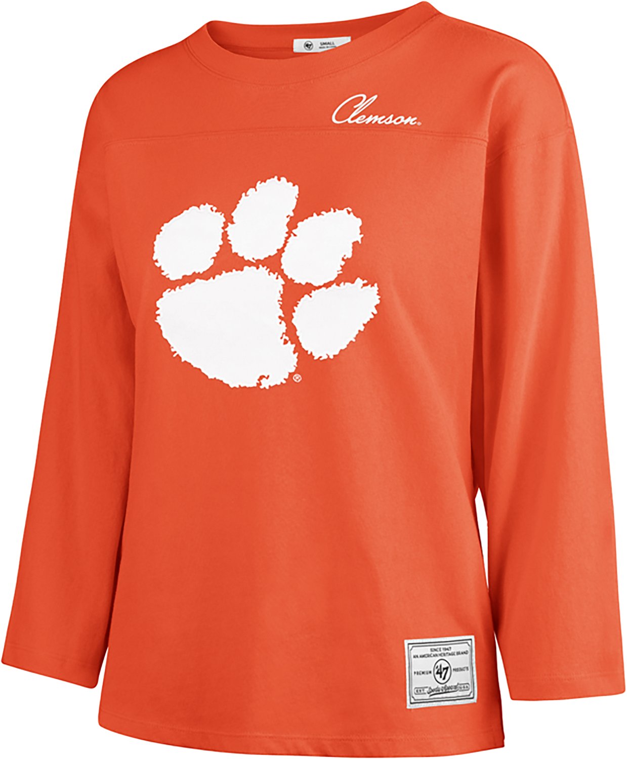 Get pumped to watch the next game by throwing on the 47 Women's Clemson Game Nod Timeless 3/4 Sleeve T-shirt. This T-shirt is made of 100% heavyweight cotton jersey to help keep you feeling good and features a team graphic on the front to express your fan pride.