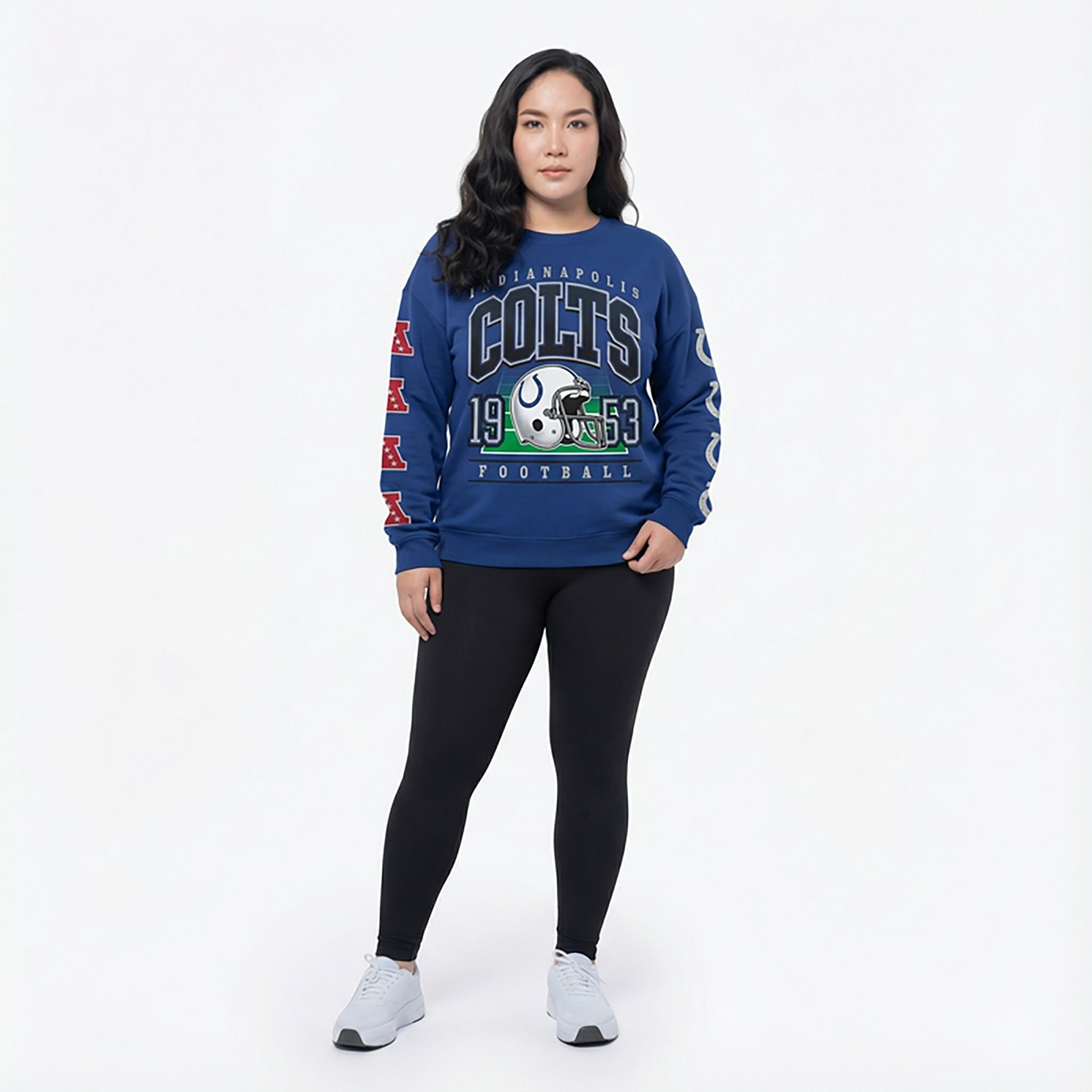 Put your love for your team on display with the 47 Women's Colts Go Big Oversize Long Sleeve Crew Sweatshirt. The midweight sport fleece construction offers a soft, comfortable feel, while the screen-printed team graphic shows off your fandom.