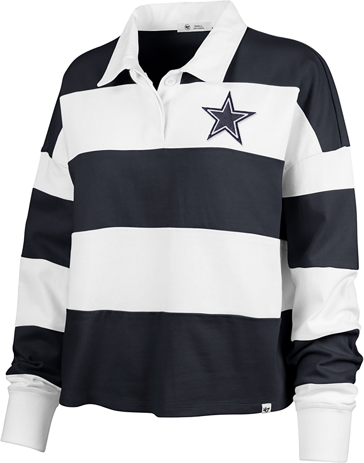 Classic meets modern in the '47 Women's Dallas Cowboys Hall Raven Rugby Current Long Sleeve Polo Shirt. This rugby-style polo is made of soft cotton for all-day wear. The horizontal banding uses Dallas Cowboys colors and combines with a team-inspired graphic for a stylish look that shows off your love for football.