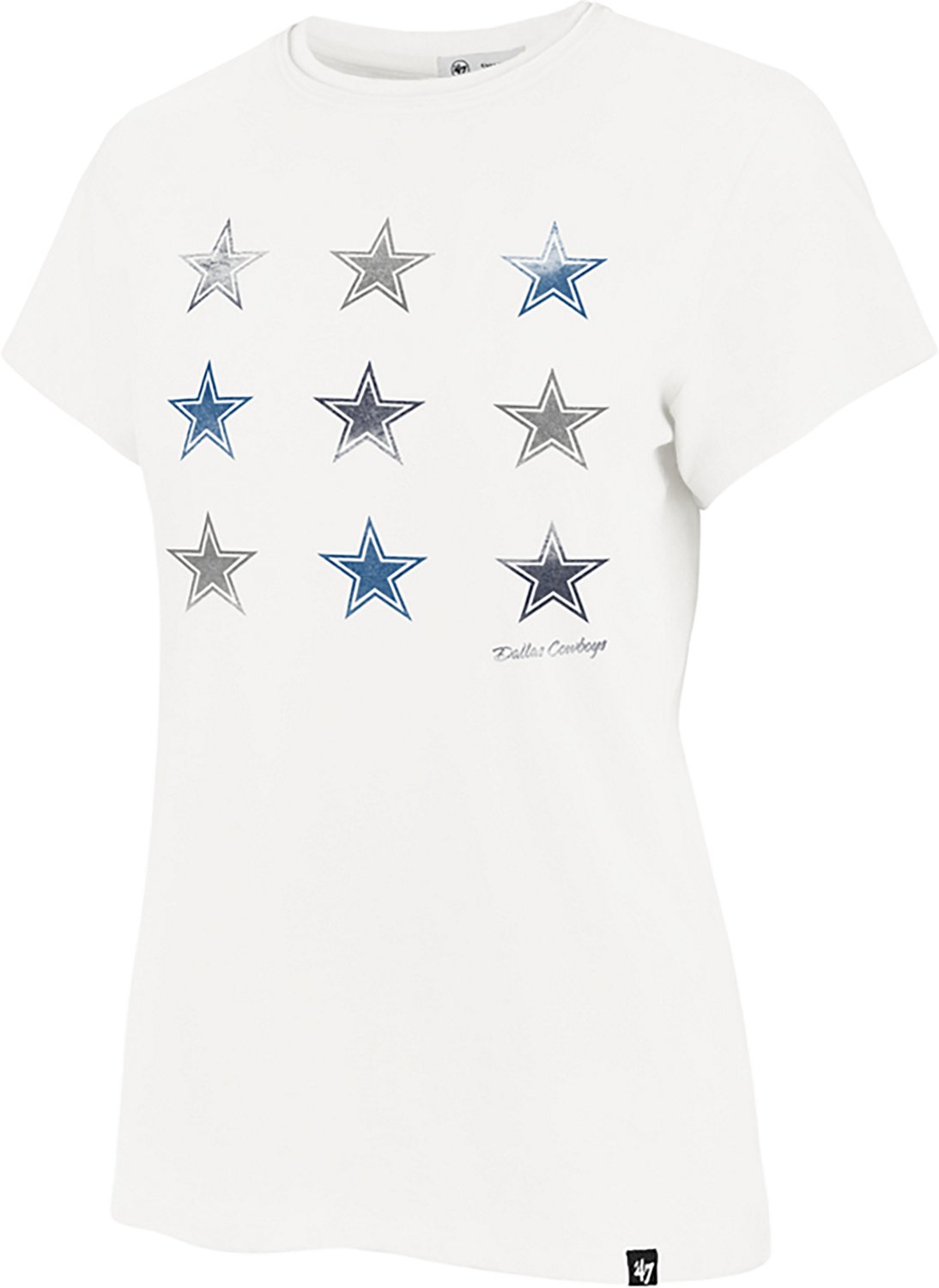 Display your fandom in style with the '47 Women's Dallas Cowboys Wild Dreams Frankie T-shirt. This lightweight t-shirt is made of soft cotton for comfortable, all-day wear. The nine Cowboys stars screen printed on the front show off your love for your favorite football team.